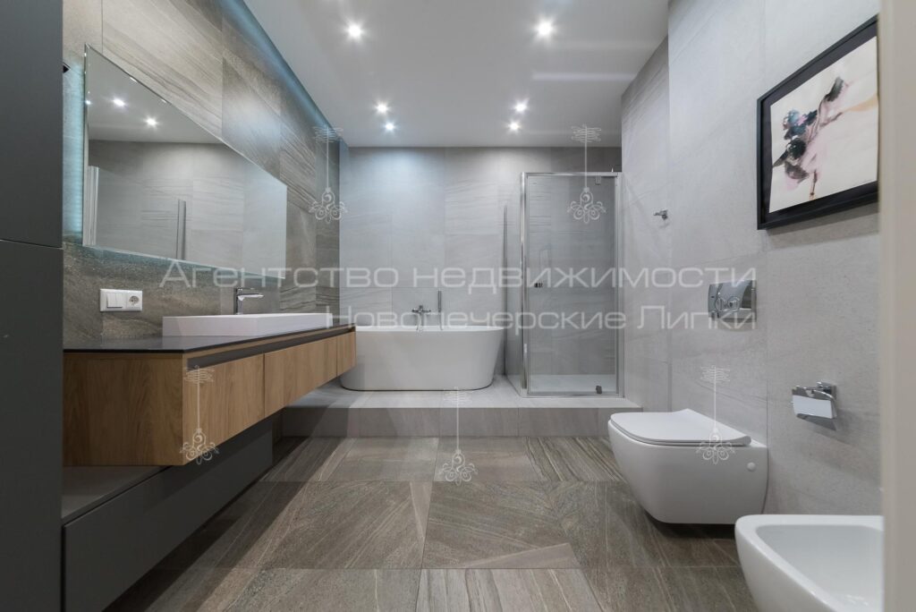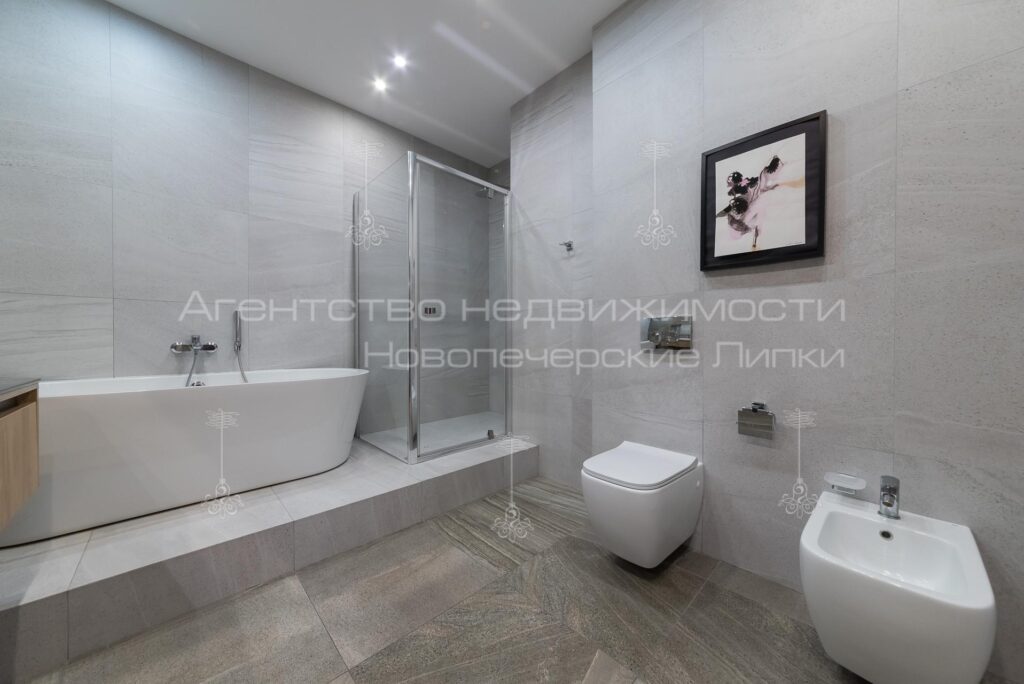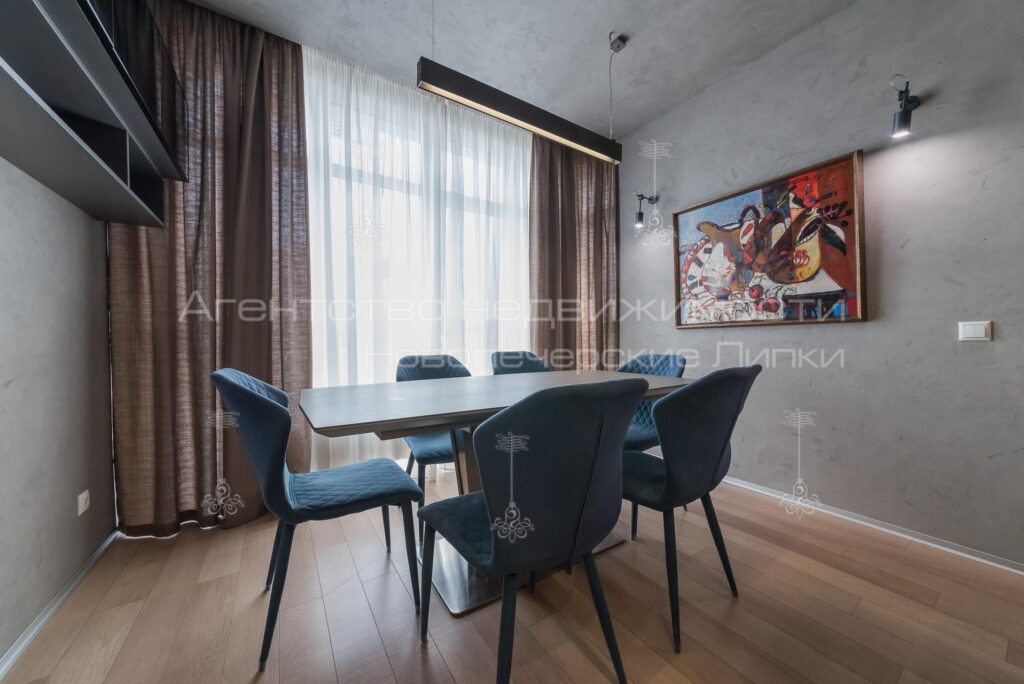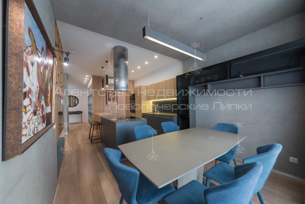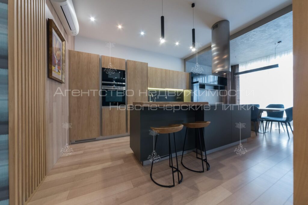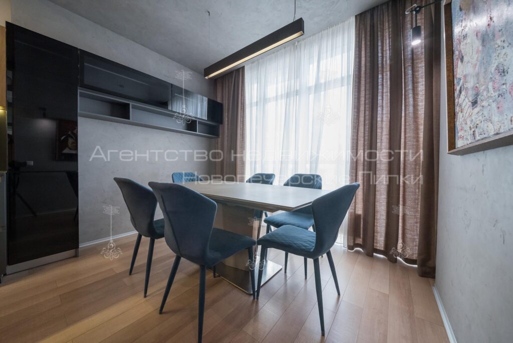Кухня поєднана з вітальнею, 4 спальні кімнати, 4 санвузли (3 душових та 1 ванна кімната). Квартира повністю мебльована та укомплектована всією необхідною технікою.