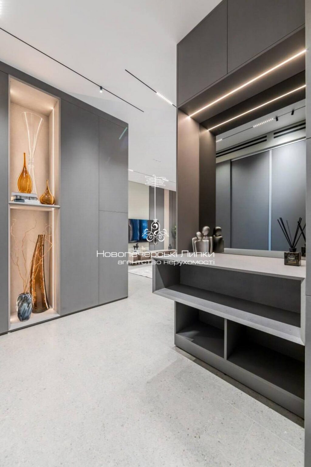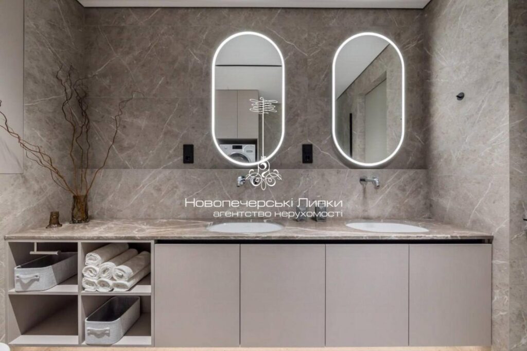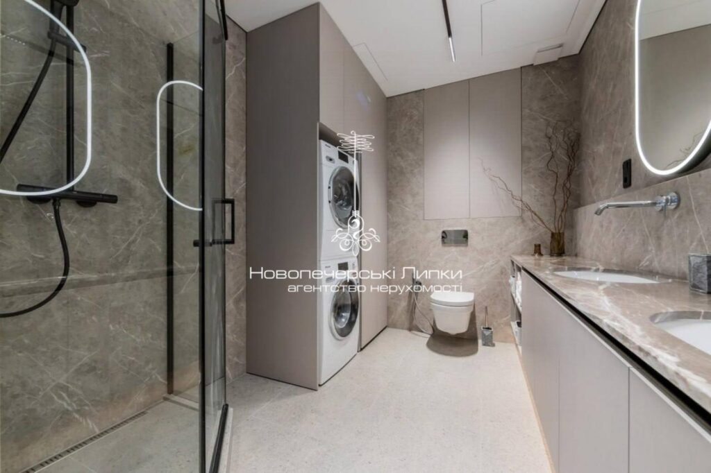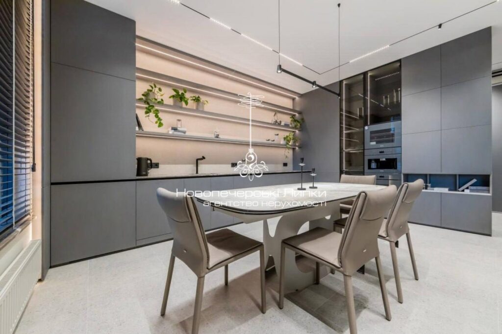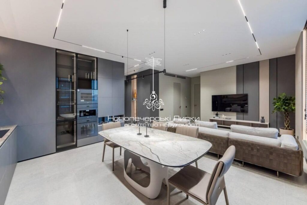 Інтер’єр виконаний у сучасному стилі з використанням преміальних матеріалів та меблів від провідних італійських брендів — Calligaris, Natuzzi, Miele, Saviola. Усі елементи гармонійно поєднані між собою, створюючи елегантний та затишний простір.